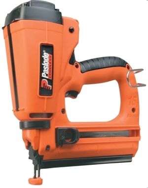 • The Paslode 16 gauge straight cordless finish nailer, item# 902000, drives 3/4" to 2-1/2" 16 gauge finish nails. No hose or compressor required. This cordless finish nailer features an adjustable depth of drive for precise control of nail depth and no-mar tip to protect trim surfaces and finishes. Excellent tool for door and window trim, paneling, baseboard, casing, crown molding, cabinetry, and door jambs. Requires fuel cell and battery to operate.